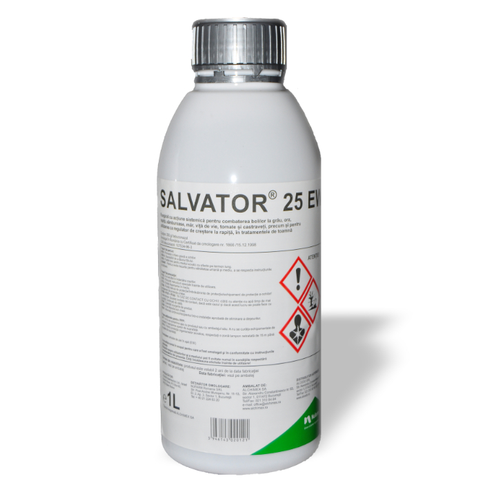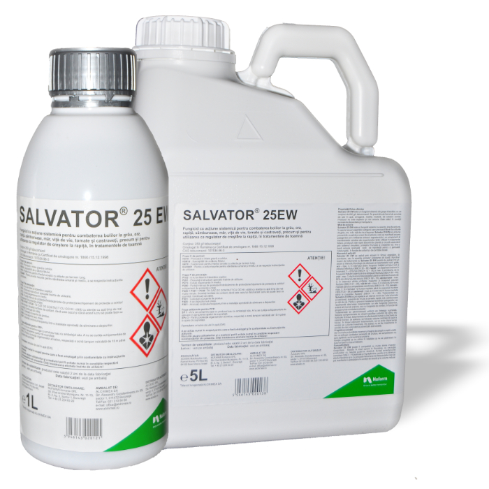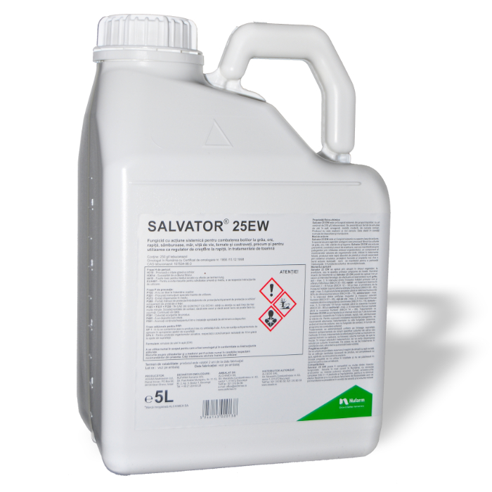 SALVATOR® 25 EW is a systemic fungicide of the triazole group, containing 250 g/L tebuconazole. It is a homogeneous, mobile, odorless, cognac-colored, oil-in-water emulsion. The product is not explosive or corrosive. It is stable under normal storage and handling conditions.