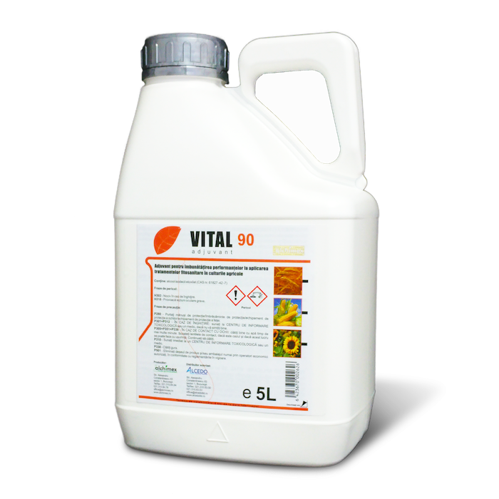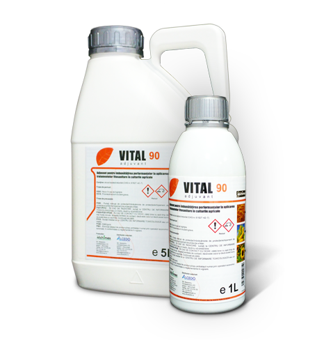 VITAL 90 is a colorless, odorless liquid product containing 90% isodecylated ethoxylated alcohol, a non-ionic surfactant substance, with an adjuvant role to increase the effectiveness of phytosanitary treatments in agricultural crops.