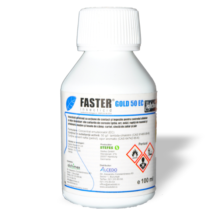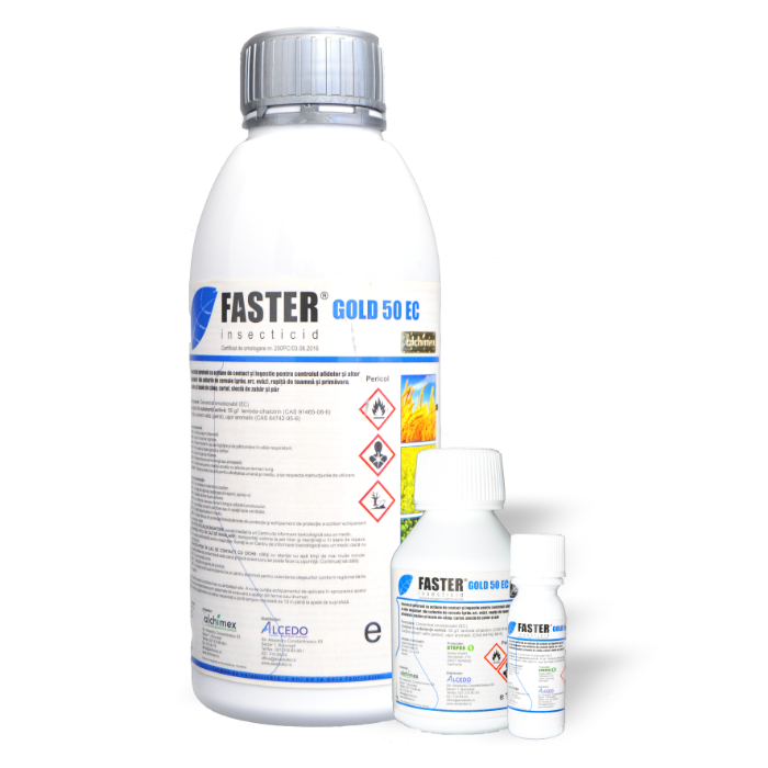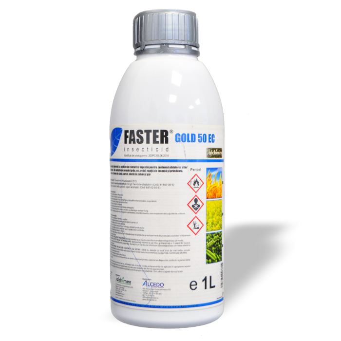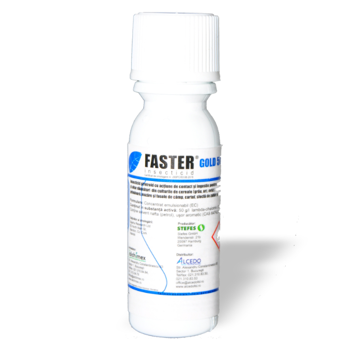 FASTER® GOLD 50 EC şi este un insecticid din grupa piretroizilor, cu acţiune de contact şi ingestie asupra unei game largi de dăunători. După aplicarea produsului, substanţa activă penetrează cuticula insectei într-un timp scurt, acţionând asupra sistemului nervos central şi periferic. Dăunătorii încetează să se mai hrănească, după care intervine paralizia şi în scurt timp moartea acestora.