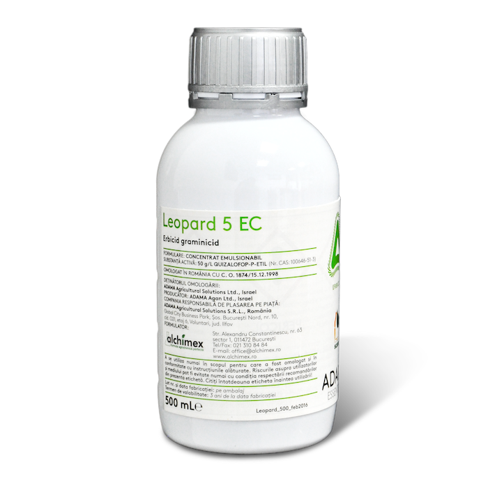 LEOPARD 5 EC (50 g/L quizalofop-p-etil) este un concentrat emulsionabil pe bază de quizalofop-P-etil (50 g/L), compus din grupa chimică a ariloxi-fenoxi-propoinaților. Produsul se prezintă sub formă de lichid limpede, omogen, mobil, de culoare galbenă. Nu este exploziv și nici coroziv. Produsul este stabil în condiții normale de depozitare și manipulare.