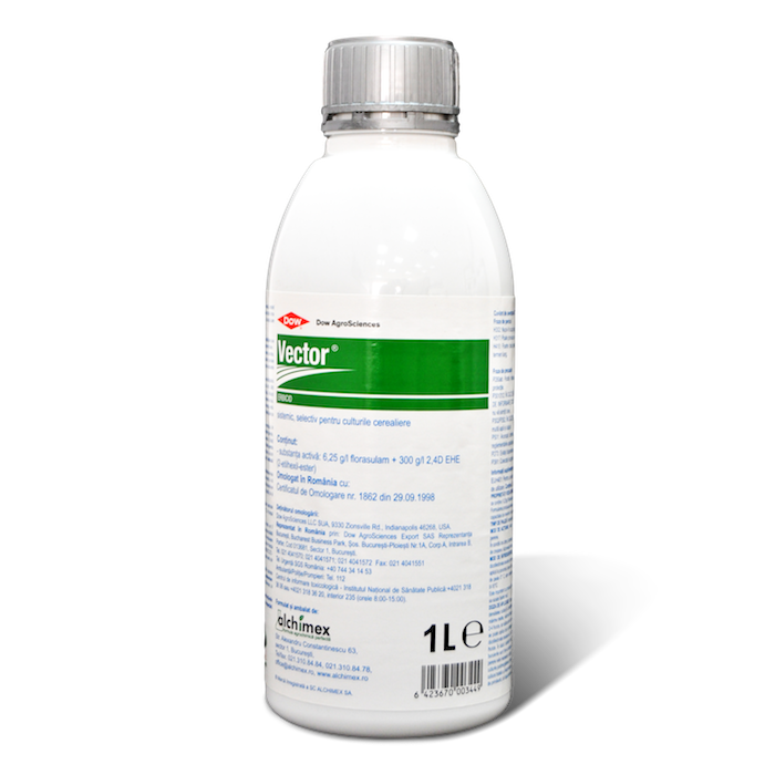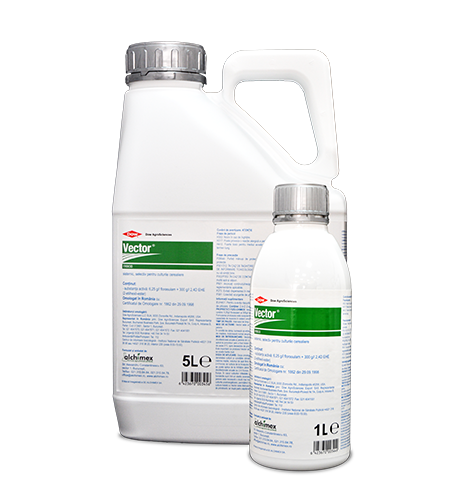 MOD DE ACȚIUNE: VECTOR® este un erbicid selectiv, sistemic, acționând asupra buruienilor dicotile anuale și perene. În condiții de câmp, lucrează ca erbicid foliar ce penetrează frunzele prin stomate și este transportat în țesuturile de creștere. Acționează numai asupra buruienilor prezente în momentul aplicării (postemergent).